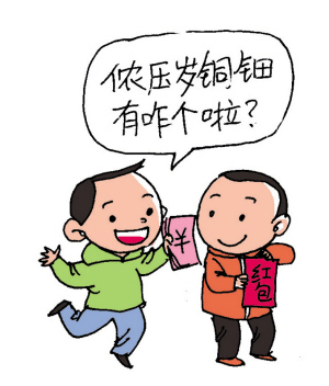 例句:侬压岁铜钿有咋个啦?[你压岁钱有多少?]