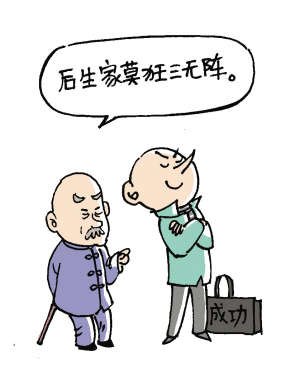 例句:后生家莫狂三无阵。[年轻人不能举止莽撞。]