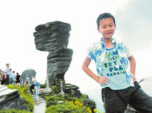 当一些成年游客在国内外用不文明行为给家乡抹黑时,一个脑瘫儿童跟着奶奶用“穷游”的方式艰辛治病,还不忘帮家乡播撒文明旅游的种子。 全家决定让孩子旅游治病 3日,记者来到武汉四维街五福社区陈浩岚小朋友的家里。一开门,12岁的小浩岚笑着打招呼,忙不迭地搬出椅子让记者坐下。小浩岚身高有1.5米,皮肤白净,待人接物落落大方,初看时跟同龄小朋友没两样,只是张嘴说话时口齿不太清晰,走路脚跟不能全着地,还有些不稳。“能这样已是奇迹。”奶奶赛春芳说,小浩岚的残疾证上还写着智力和下肢二级残疾,属于重度残疾。 因出生时缺血缺氧造成窒息,小浩岚一落地就成了脑瘫儿。“4岁前他走路是头向前倾斜90度,两手张开保持平衡,整个姿势跟歪歪扭扭的飞机一样。” 赛春芳说,到了两岁时,陈浩岚还不会说话,端碗总是掉地上,成天流口水,5岁时连一加一等于二也不会。“身体的残疾不可怕,就怕他因此自卑自闭,这样一辈子就走不出来了。”赛春芳说。 “可以带孩子到大草原、大沙漠、大山大海边,让他尽力地蹦跳,大声的喊叫,刺激受损神经,经常有爬山等活动,还能锻炼身体,避免四肢肌肉萎缩。”医生的话给小浩岚全家带来希望,带孩子旅游治病成了全家的目标。 住20元的旅馆坐绿皮火车 下决心带孩子旅游治病,但一个“钱”字难住全家人。记者在赛春芳家看到,祖孙三代五口人挤在不足40平米的老房子里,家里摆满了旧家具,斑驳的墙面贴满了乘法口诀表、汉字表和课程表,小浩岚的课桌就在客厅饭桌旁边。赛春芳介绍,儿子儿媳也都是一般的职工,没有多少收入,老伴的工厂也早已倒闭。但不管有多难,家人仍咬着牙带小浩岚到全国各地求医,顺道让小浩岚见识全国的风景。 因为家庭条件有限,仅有的一点积蓄要看病,所以小浩岚只能“穷游”。为了节约路费,奶奶带小浩岚旅游乘车都捡最便宜的“绿皮车”,到了外地也只住十几元、20元的小旅馆。一次住在沿海的一座小城,破旧的小旅社老鼠成灾,大白天包都被咬破。 他们旅游时也不能肆意品尝特色美食,而主要以米粉、面条、馒头果腹。“一个人每天伙食费不超过5元,最亏欠孙子的是出门从没给他买过饮料,孙子也特别懂事,不管在家还是在外,从来不找我买饮料零食。”说起小浩岚的懂事,奶奶的眼圈顿时红了。 赛春芳最庆幸的,还是大多景区对残疾人和老年人都有优惠。她说:“我们一老一小拿着老年证、残疾证,很多景区都免票,不然我们也坚持不下来。” “从2006年11月12日到2013年2月20日,历时377天,共出游29次,135个市,足迹遍布除港澳台之外的绝大部分中国。”孙子陈浩岚这些年的“穷游”经历都被赛春芳记载下来,一个夹杂着景点门票、火车票的笔记本已被记得满满当当。 “他走路不稳,经常会跌倒,我故意装着没看见,让他自己爬起来。再陡峭的山我也鼓励他爬上去,他也不叫苦。”赛春芳说。 治病旅游的经历,不仅身体变好了,小浩岚也变成了一个开朗的小孩。在外地遇到陌生人,他也经常主动打招呼,碰到外国游客都会说“Hello”。 大胆制止游客不文明行为 跟着奶奶旅游时,小浩岚不仅自己遵守文明礼仪,还常劝阻别人的不文明行为。 2010年7月份,小浩岚跟着奶奶在沈阳故宫旅游。行经大正殿时,旁边几个男青年正在那里说:“我们就在这个圆柱子上刻点字留念吧。”有人当即附和说:“就写个‘到此一游’。”几个人议论得正高兴,小浩岚不干了。他跑过去对几个男青年断断续续说:“大哥哥,请你们不要在上面写字,要保护文物。”这几名青年面红耳赤,也没再刻字。 去年年底,小浩岚在黄鹤楼白云阁附近的梅园游玩。有几个中年妇女在园里乱折梅枝,将折下的梅枝塞到身边口袋里。小浩岚看到后主动过去,发音艰难但仍坚持对她们说:“爱护公共财物,不能乱采乱折。”几名妇女却装作没听见,仍然继续折梅枝。小浩岚说:“我去找管理员。”说着他就向值班室跑去。几名妇女见此情形赶紧停手,匆匆离开了梅园。 陈浩岚告诉记者,他有个梦想,想到英国、美国去看一看,到那里去宣传我们美丽的中国、美丽的武汉。 据《武汉晚报》