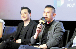 | 导演虞军豪(左)、主演侯勇回答记者提问。 |