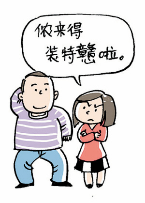 例句:侬来的装特戆啦。[你在装傻呢。]