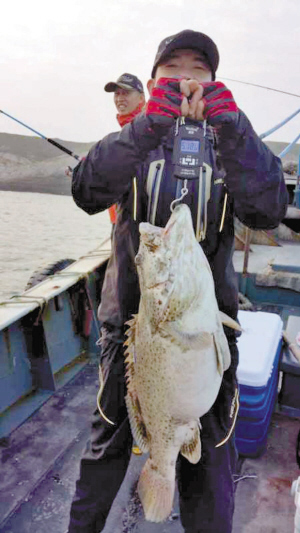 在一位很有经验的钓友的建议下,一行人绕到北渔山的一处暗礁去碰碰运气。“没想到,第二杆就钓起了一条约莫5公斤半重的石斑鱼。据我所知,这可能是渔山钓场钓到过的分量最重的石斑鱼。”这次海钓小组的领队柳志荣说。