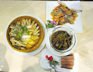 第九届宁波美食节之传统咸鲜美食展示活动上,组委会请新舟宾馆大厨陆师傅展示红膏炝蟹、鳗鲞、醉虾三道经典宁波菜的做法。 记者 江涛 摄 |