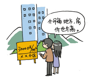 例句:介吊角地方,房价也介高。[这么偏僻的地方,房价也这么高。]