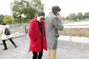 | 方赐恩帮洪璐捋顺大衣的褶皱。 |