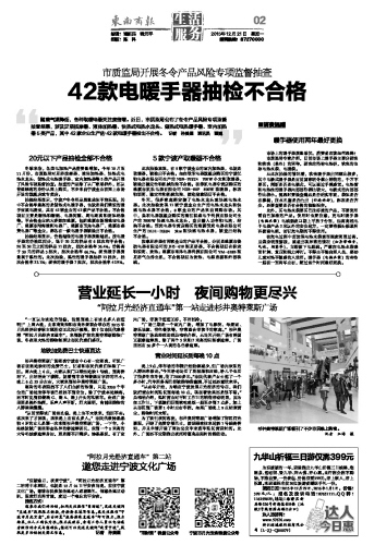 随着气温降低,各种取暖电器关注度倍增。近日,市质监局公布了冬令产品风险专项监督抽查结果,涉及足浴按摩器、液体加热器、快热式电热水龙头、储热式电热暖手器、室内加热器5类产品,其中42家企业生产的42款电暖手器检出不合格。记者 孙美星 通讯员 董巍 20元以下产品抽检全部不合格 冬季来临,各类电加热产品消费量增加。今年10月至11月份,市质监局对足浴按摩器、液体加热器、快热式电热水龙头、储热式电热暖手器、室内加热器等5类产品开展了风险专项监督抽查。抽查的产品除了从厂家采样外,还以普通顾客的身份从网上购买,不少来自宁波企业在网上市场开设的旗舰店或专卖店。 抽检结果显示,宁波产冬令用品质量总体不容乐观。其中不合格率最高的是储热式电暖手器,也就是我们常说的暖手宝或电暖宝,共有42家企业的42款产品不合格。不合格项目主要是耐热和耐燃、电器间隙、爬电距离和固体绝缘等。不合格企业绝大多数在慈溪,包括慈溪市新浦慈宝电器厂、慈溪市附海暖阳电器厂、慈溪市玉兔电器厂、慈溪市盛赞电器厂等企业,都各有一款电暖手器被检出不合格。 抽检结果显示,价格越低的电暖手器质量越差。按电暖手器的价格区间分,低于20元的样品有6批次均不合格;20至50元之间的样品11批次,批次合格率36.4%;价格高于50元的样品3批次,批次合格率66.7%。硬壳暖手器质量高于柔性的。此次抽检,柔性的暖手器抽样13批次,批次合格率23.1%;硬壳的暖手器7批次,批次合格率42.9%。 5款宁波产取暖器不合格 此次抽检发现,有5家宁波企业的室内加热器,也就是取暖器,被检出不合格。如在欣禾电器旗舰店购买的宁波亿和电器有限公司生产的NSB-70ST4 700W小太阳取暖器,被检出稳定性和机械危险不合格。在伟凯电器专营店购买的慈溪市凯乐电器有限公司NSB-80F 800W取暖器,标志和说明、稳定性和机械危险、接地措施项目不合格。 冬天,很多家庭都安装了电热水龙头或快速电热水器。此次抽检发现11家宁波企业生产的电热水龙头和快速电热水器不合格,8家企业的产品来自网购市场。其中,皇羽电器旗舰店购买的浙江锐盛电子科技有限公司生产的2000W快速电热水龙头,查出输入功率和电流、结构不合格;恒尚电器专营店购买的慈溪恒尚电器有限公司生产的DLH-DR04 3kw型快速电热水器,被查出结构不合格。 按摩足浴器有两家企业的产品不合格,分别是慈溪市俊航电器有限公司的JH5-618型足浴器,不合格项目有标志和说明、发热;慈溪市雨沐电器科技有限公司YM-618B型足浴气血养生机,不合格项目为发热、电源连接和外部软线。 ■消费提醒 暖手器使用两年最好更换 市场上的暖手器质量堪忧,消费者应该如何选择? 市质监局专家介绍,目前市场上暖手器主要分硬壳和软壳(柔性)的两种,硬壳的俗称电热饼,软壳的也称电热水袋、电暖袋。 从此次抽检的情况看,软壳暖手器出问题比较多,其中电极式暖手器是目前国家明令禁止销售的,千万不要买。判断是否是电极式,可以通过手摸感觉。电热管和电热丝的暖手器内部部件都比较大,电极式的内部部件比较小。挑选时要检查缝边是否结实牢固,袋体是否有渗漏,注水孔塞是否凸出(凹进的好),标志是否齐全,还要查看是否有合格的检验报告。 此外,买电热水袋要买已注好液的产品,不要使用需自己加液的产品。使用时也要注意,充电时暖手器(电热水袋)电线插座口朝上平放于台面,远离高档电子电器产品2米以外的安全地方,一定要将插头插紧后再接通电源,切记充电期间不得使用。 在充电过程中若发现电热水袋表面温度明显过高,且袋身明显膨胀,或者出现异常的情况(如异常噪音、气味、烟雾等),立即拔下电源线。严禁在电热水袋表面针刺、重压和强力摔打。不得由不能自理人员、婴幼儿或对热不敏感的人使用。暖手器(电热水袋)的寿命一般在一至两年左右,超过这个时间最好更换。