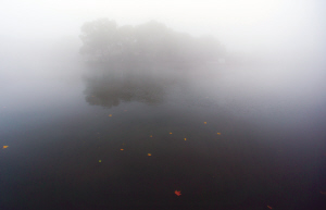 市气象台昨日4时43分发布大雾橙色预警:受晴朗天气辐射降温的影响,全市大部分地区已经出现能见度小于200米、大于等于50米的雾。天刚蒙蒙亮,甬城果然大雾弥漫,走在大雾里,感觉连呼吸都是湿漉漉的。随着阳光发力,雾也慢慢消散了。图为浓雾笼罩下的月湖。记者 刘波 摄