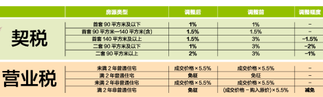 继首付2成房贷新政后,楼市再迎政策红包!昨天,财政部、税务总局和住建部三部门发布《关于调整房地产交易环节契税营业税优惠政策的通知》(下称《通知》),对个人购买前两套住房给予降低契税优惠;对个人将购买2年以上(含2年)的住房对外销售的,免征营业税。记者 王婧 施忆秋 契税、营业税双调减 《通知》指出,在契税优惠政策方面,对个人购买家庭唯一住房(家庭成员范围包括购房人、配偶以及未成年子女,下同),面积为90平方米及以下的,减按1%的税率征收契税;面积为90平方米以上的,减按1.5%的税率征收契税。 据了解,此政策契税调整主要在面积为90平方米以上。之前政策对户型面积在90平方米—140平方米(含140平方米)的,契税税率为1.5%;所购住宅户型面积在140平方米以上的,契税税率按照3%征收。而新政则将契税税率降至1.5%,降幅明显,利好90平方米以上购房居民。 对个人购买家庭第二套改善性住房,面积为90平方米及以下的,减按1%的税率征收契税;面积为90平方米以上的,减按2%的税率征收契税。家庭第二套改善性住房是指已拥有一套住房的家庭,购买的家庭第二套住房。 根据《通知》在营业税优惠政策方面,个人将购买不足2年的住房对外销售的,全额征收营业税;个人将购买2年以上(含2年)的住房对外销售的,免征营业税。 值得一提的是,此前政策仅对个人将购买2年以上(含2年)的普通住房对外销售免征营业税,而此次政策则将非普通住房纳入免税范围。 不过,上述政策并不全部适用于北京、上海、广州、深圳四个地区。 对改善型产品将有明显刺激 事实上,早在去年7月,宁波财政局就发布政策,2015年7月1日至2016年6月30日期间,在宁波,不管是购置住宅,还是购置非住宅(商铺、写字楼等),均可按所购房屋实际缴纳契税额度的50%给予购房补贴。也就是说,购房者先按正常的税率缴完契税;然后,税务部门再按50%的补贴力度,把一半的税款,以财政补贴形式返还。 而如今,降了首付又降契税、营业税。2016年才过去不到两个月,已经连续出台多项楼市利好政策。 业内人士分析,本次的政策调整对二手房影响比新房更大。这是因为二手房实时交税,而新房大部分是期房,基本要到收房才存在契税缴纳。而针对此次契税的调整,主要是二套房及144平方米以上的首套房,降幅为1%-2%这一情况来看,受利好影响最大的还是改善型产品。 而营业税政策相比之前不一样的主要体现是非普通住房,针对大户型、高价、别墅等物业,在过去的政策中,满2年也需要缴纳差额营业税,在新政策未明确,如果各地落地细节中也按照住房计算,那么对于改善性需求有非常明显的利好。