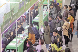 | 第27届高校毕业生供需洽谈会首场招聘会现场。 记者 王鹏 摄 |