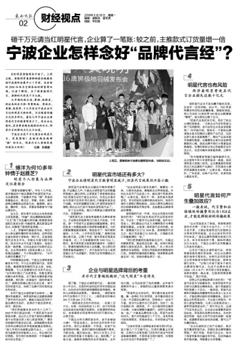 当红明星黄晓明来宁波了。上周五晚,黄晓明穿着唐狮新款羽绒服亮相宁波国际会展中心7号馆,向在场的2000位来自全国各地的销售商吆喝。记者了解到,为了请黄晓明代言,唐狮的代价是千万元级。 从早期的赵文瑄、费翔、赵雅芝,到后来的皮尔斯·布鲁斯南、李连杰、黄渤、张亮等,十几年来为宁波企业代言过的明星不胜枚举。不过随着传播方式的多样化,最近几年宁波企业请明星代言的数量明显少了。有企业也感叹,在消费者越来越理性的今天,明星代言的影响力已大不如前。 宁波企业花千万元请当红明星代言,究竟图啥?在粉丝越来越难“搞”的今天,明星代言人营销究竟还能怎么玩呢?记者 孙美星 1 博洋为何10多年钟情于赵雅芝? 明星个人形象与品牌定位要契合 “酒香也要勤吆喝”。早在十几年前,逐步崛起的宁波品牌就开始请明星代言,为品牌造势。宁波最早开始“傍”明星的是服装企业,雅戈尔、罗蒙、杉杉、培罗成等品牌都找过明星代言,像费翔、赵文瑄、濮存昕、胡兵、罗嘉良等都曾与宁波品牌合作。 这之后,家电等行业的企业也纷纷借力明星资源。“帅康”找过舞蹈家杨丽萍,“方太”找了知名魔术师刘谦,欧琳曾请来国际巨星皮尔斯·布鲁斯南,奥克斯请过李连杰,双鹿请了影视明星黄渤…… 上月,罗蒙举行新款发布会,两位代言人林志颖和濮存昕双双亮相,这样的组合意在将老中青粉丝一网打尽。目前请张亮代言的太平鸟,则被业内誉为眼光独到。因为当年太平鸟签下张亮时,他虽已经是一线男模,但知名度远不如现在这么高。自从带娃参加《爸爸去哪儿》之后,张亮迅速蹿红,不少网友都评论:“太平鸟真的是赚到了!” 仔细梳理会发现,宁波企业请明星套路各有不同。不少企业请明星代言,经常在换。像唐狮请黄晓明代言之前,SHE、萧敬腾、飞儿乐团都曾先后为其代言过。“去年我们推出了品质更高、价格也更高的都市系列男装,为了提升品牌形象并强调质感,我们第一次请国内一线的明星代言。”唐狮总经理应春光告诉记者,请不同的明星代言,体现了品牌不同时期的变化和诉求。 有的宁波企业请明星代言很专一。像博洋和赵雅芝、培罗成和赵文瑄都是持续了多年的代言合作,像赵文瑄还因为和宁波品牌的关系好,选择在宁波定居养老,成为一段佳话。 “我们和赵雅芝的合作有十几年了,2002年我们是国内第一个请明星代言的家纺品牌,这以后几乎每个家纺品牌都会请个女明星在床上拍几组宣传照。”博洋总经理何平波告诉记者,选择赵雅芝是因为其和品牌定位的幸福家庭理念很契合。“前几年我们也曾想过换代言人,一方面因为赵雅芝的形象深入人心,供应商们反对更换,另外我们也难找到一个和她条件相当的女明星。” 2 明星代言市场还有多大? 宁波企业请明星代言数量明显减少,但其代言效果仍不容小觑 请明星代言曾是企业屡试不爽的营销手段,不过最近几年,宁波企业请明星代言的数量明显减少。最近两周,记者联系了多家曾经请过当红明星代言的宁波企业采访,有的企业表示如今明星代言的作用已弱化,不愿意再谈及这个话题。有的则透露因为前几年请明星效果不理想,现在企业已经不考虑再请明星代言了。 对于企业来说,砸出大笔真金白银请明星代言,究竟图啥? “请明星代言主要是希望提升品牌的影响力。不过现在明星影响力已经大不如前。十年前,请一个明星可以直接拉动服装销售,穿在明星身上的服装会吸引很多粉丝跟着买。当时买新款服装就送海报,粉丝会为了一张印刷的海报,几十件、上百件的买衣服。”唐狮总经理应春光说,记得十年前一款有明星亲笔签名的海报,在二手市场都能炒到1000元以上。现在,除非是明星当场签售的海报有一些吸引力,普通的海报根本没人去收藏。而且现在的消费者越来越理性了,并不会因为代言人是明星就认为产品质量好,明星代言的传播效应已开始淡化。 “过去选明星只要有名就行,随便拉一个来,只要知名度高,都能给企业带来效益。有的企业甚至产品还没上市,就先请个明星来吆喝。”应春光说,现在不一样,选明星有很多讲究,首先明星和品牌的契合度如何,他的代表作主要吸引哪些粉丝,这些人群和品牌定位的目标顾客群是否契合等,这些都是品牌要考虑的事情。 请黄晓明代言一年多,对企业究竟有何明显的作用?“我们没有具体评估过明星的作用,不过有一个数字可以说明问题。每年的订货会上,我们都会以代言人为模特展示当季最新款的服装。之前请二线明星代言的时候,如果一套服装可以订出1000套,请黄晓明代言之后一场订货会能订出2000套,主推款式的订货量能增加一倍。” “我们把黄晓明的海报贴在店外,有路过的顾客看到,就会进店去逛一逛。对我们来说顾客只要走进店里,就有商机。”在上周五的唐狮发布会现场,专程从西安赶来的销售商洪江说,黄晓明拍海报款的服装,很多顾客会特意去试一试,他每次都会多订一些。 3 企业与明星选择背后的考量 并非代言费越低越好,“过气明星”不受待见 据了解,宁波企业请明星代言,一般周期在2年左右,在签约时会约定好所有的规定动作,比如在合作期间要拍摄哪些宣传海报,参加几次现场活动等等。一般来说,一线明星的2年代言费在千万元上下,二线明星的价格在200万元到600万元不等。 “一线明星在合约外的活动,一次要上百万元
