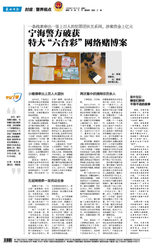 近日,据宁海警方通报,当地警方通过缜密侦查,成功摧毁一个涉案资金上亿元的特大“六合彩”网络赌博团伙,抓获葛某、施某、杨某等36名犯罪嫌疑人,查获126名违法赌博人员,查扣涉案电脑12台、手机45部、银行卡49张。 记者 张贻富 通讯员 周国亮 小赌博牵出上百人大团伙 去年8月,宁海县公安局桑洲派出所接到报案,一个叫金某的男子在当地开设“六合彩”赌博。经过不到一个月的侦查,办案民警成功将金某抓获。 “刚开始,我们以为这只是一起普通的赌博案件,但通过深入侦查发现,这个案子没那么简单。”办案民警介绍说,“我们查看了他的手机,发现他手机社交软件中有很多有关‘六合彩’的信息,说明开设或者参与‘六合彩’赌博的肯定不止他一人。经过进一步查询,发现他与多人有资金往来,而且资金往来非常频繁,金额也比较大,由此判断他背后肯定还有人,甚至是一个犯罪团伙。” 查获这一线索后,民警对金某和其相关信息进行了进一步的侦查和分析,发现他不仅仅是简单地参与“六合彩”赌博,同时还经营“六合彩”赌博:他在跃龙街道环南中路一处房子里经营“六合彩”投注,开设赌场,从上线杨某、葛某等人处获取抽成,同时纠集陈某等人为其“销售”,接受他人“六合彩”投注,并物色林某、唐某等人为下线,答应给予高额抽头。 经初步调查,金某共接受他人投注1800万元,获利36万元。通过询问和多方侦查,金某背后的犯罪团伙渐渐浮出水面,同时警方通过审讯得知他们的上线为李某。 从最底层的“打码”人员到帮忙“抄码”的人,从拥有赌博网站账户的私人庄家,再到提供账户的中间人,这一网络赌博团伙已经构成了完整的网络赌博产业链。至此,整个案件的涉案金额已经远远超出了一开始的几百万元。去年11月,宁海警方组织人员成立专案组,专门侦办此案。 五层网络牵一发而动全身 据警方介绍,“六合彩”是香港唯一的合法彩票。但在大陆属非法。为谋取利益,大陆非法分子利用香港“六合彩”号码进行赌博活动,被人称为地下“六合彩”,其本质是私人作庄的私彩。 地下“六合彩”的经营一层连着一层,牵一发而动全身。在这起案件中,警方把犯罪团伙分成了五个层级:第一层级是开设网站的,也就是私人庄家;第二层级是网站维护人员;第三层级是地下“六合彩”投注点经营人;第四层级是抄码的人;第五层级是打码的人,由此构成一张完整的专案网络图。 不过,由于网络赌博具有很大的隐蔽性,涉案人员多,隐藏的人员也多,一层一层打击会惊动其他层级的犯罪嫌疑人。对此,警方决定首先采取“腰斩”战术,先打击第二层级和第三层级的犯罪嫌疑人,因为他们是整个犯罪团伙的中坚力量,起着承上启下的作用。一旦抓到这群人,其上下两个层级的同伙就逃不掉了,从而巩固相关证据。 两次集中抓捕网住百余人 万事俱备,只待收网。 去年11月19日,宁海县公安局抽调治安大队、巡特警大队、跃龙派出所等部门民警开展第一次集中抓捕行动。 当晚12点左右,行动一组蹲守在犯罪嫌疑人葛某家门口,想来一个瓮中捉鳖。可没想到,正当民警准备行动时,他家的大门打开了,葛某本人走了出来,启动了停在一旁的私家车。 便衣民警一路驱车追踪,结果发现葛某在黄坛镇的一家夜宵店停了下来,手里抓着一个鼓鼓的信封走进了店里。民警猜测,信封里装的很可能就是他的下线交上来的赌资。贸然进去可能会打草惊蛇,但是其他小组的行动已经启动,到时候葛某听到风声跑路,再想抓他就难了! 等了10多分钟不见葛某出来,民警迅速冲入夜宵店实施抓捕,一举将里面的6个人全部抓获,而葛某手里的信封不出所料,装的正是赌资,共有6万余元。同时,负责网站维护、帮助投注点开设账户的施某也在被抓获的人员当中。 一个月后,警方掌握了足够的线索和证据,按计划开展了第二次集中抓捕行动。抓捕李某等人的行动非常顺利,但在抓捕唐某的过程中,民警却遇到了难题。 当时,唐某在一个小棋牌室打麻将。这个棋牌室只有三个房间,民警跟踪到的时候,一个房间没有人,其余两个房间各有4个人。可民警拿着唐某的身份证照片逐一比对,8个人却一个都对不上。这时,一个遗落在房间角落里的手机引起了民警的注意。查看通话记录,民警发现了一个熟悉的名字,正是唐某。 民警一个一个地询问,还是没有一个人承认自己是这个手机的主人,也没有一个人承认自己是唐某!明明知道犯罪嫌疑人就在这8个人中,却不知道哪个是真正的犯罪嫌疑人,在询问过程中,民警注意到其中一人无意中说牌搭子某某是某某村人,而唐某就是这个村的!在证据确凿、辩无可辩的情况下,与身份证照片上的模样已经大相径庭的唐某终于承认了自己的身份。 两次集中抓捕行动后,警方掌握了该犯罪团伙大部分主要成员,其中做私人庄家的吕某在上海被抓获,漏网大鱼周某承受不住压力,于今年1月份投案自首。在后续的不间断侦查和抓捕中,整个案件涉案人数达到了126人之多! 目前,此案还在进一步侦办之中。据了解,去年,宁海警方对地下“六合彩”违法犯罪活动整治工作作了部署,专门下发了打击工作方案,截至目前共查获“六合彩”赌博刑事案件28起,起诉117人,有效遏制了地下“六合彩”赌博活动。 “地下‘六合彩’严重败坏社会风气,影响社会治安和经济健康运行,我们会持续加大打击力度,遏制这股不