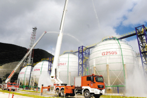 7月6日上午,浙江省危化品事故处置现场会在宁波大榭开发区举行。演练现场,高空传输实时画面的侦查无人机、可深入火场中心探测可燃浓度的消防机器人、可1分钟喷出5吨泡沫的泡沫集转器等一批高科技装备得到检验和应用。颜杰 摄 天上盘旋的无人机,像一个微型小坦克般缓缓前进的消防机器人,配备各种高科技装备的新式消防车…… 7月6日上午,浙江省危化品事故处置现场会在宁波大榭开发区举行。现场会上,宁波消防模拟演练LPG球罐根部法兰泄漏事故发生后,企业、消防、社会如何实现“三级四动,1335”应急响应机制,快速发现、处置事故,推广和分享危化品处置先进做法和经验,为9月份即将召开的G20峰会保驾护航。 如何“规范、灵敏、高效”地处置危化品事故,把事故消灭在萌芽阶段?现场会上,宁波消防支队演示了危险化学品事故“三级四动·1335”(三级响应、四步联动,一分钟、三分钟、三分钟、五分钟)应急响应机制。 据了解,三级,指的是指企业、县区、地市三级响应。四动,指企业当班班组、企业应急力量、县区救援及社会联动力量、地市消防增援及社会联动力量四步联动。1335,是指企业班组人员“1分钟”快速反应,各应急小组“3分钟”有效处置;针对“灾情控制”环节,县区级要在“3分钟”有效反应;针对“灾情消除”环节,地市级要在“5分钟”调集充足化工专业救援编队和联动力量前往处置。 这一应急响应机制,是宁波消防部门根据近年来救援处置经验,强化G20峰会消防安保工作应对准备而制定的。宁波消防支队相关负责人介绍:“一个企业如果有健全高效的响应机制,有充足的应急力量,加上处置得当,就会有效避免小事故变成大事故。有关数据显示,近10年来宁波市近87.4%的危化品事故是由企业自行处置并有效解决的。” 在演练过程中,不少新式消防装备的亮相也让人大开眼界,充分展示了“智慧消防”等先进技术在处置危化品事故时的实战应用。 天空盘旋的无人机,把球罐泄露的画面实时传输到指挥中心,帮助指挥中心做出正确的判断;灰色的消防机器人,像一个迷你的小坦克,代替消防员进入泄露危险区域,探测可燃浓度等指数。 此外,宁波消防支队战勤保障大队历时3个月创新研发的泡沫集转器也在现场亮相。利用水罐消防车水泵,泡沫集转器可同时抽取20桶泡沫液,采用水泵流量每秒95升的水罐消防车进行输转,最大输转距离可达2000米,最大输转流量每分钟5吨,极大提高了泡沫输转效率,破解了石油化工灾害事故处置中火场泡沫供给大流量、远距离、不间断的难题。 据了解,近年来宁波消防支队大力加强“智慧消防”等先进技术在处置危化品事故时的实战应用,如大数据、云计算等手段为危化品灾害事故处置提供信息支撑。目前,支队已成功集成共享全市安监系统大数据,涵盖了全市4万余家危化品企业、危化品运输车以及全市173个气象监测点实时数据。 孙波 颜杰 蔡俊