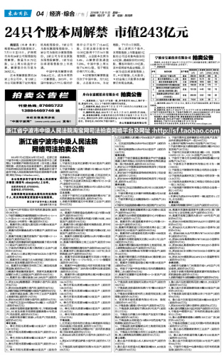 24只个股本周解禁 市值243亿元