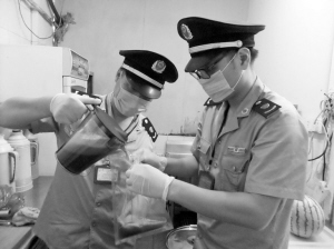宁海县市场监管局对饮料、冷冻饮品、食用农产品、速冻食品、啤酒等6大类夏季消费热点食品开展专项监督抽查。图为抽检现场。