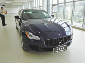 平行进口车商在展厅展示的玛莎拉蒂总裁款。 记者 毛雷君 摄 |