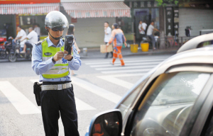 | 8月4日,咏归菜场附近,交警对占道违停车辆进行处罚。 |