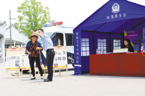 | 呜鹤古镇里的“帐篷警务室”。 |