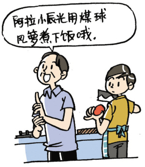 例句:阿拉小辰光用煤球风箩煮下饭哦。[我们小时候用煤炉做菜的。]