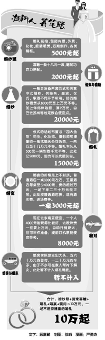 乍被女神舒淇秀了一脸恩爱还来不及缓过神,现实中,又到了中秋、国庆这段婚礼旺季,红色炸弹满天飞,身边的单身狗少了一个又一个。 婚礼对人一生的意义举足轻重。然而看着一张张雪花般飞驰而来的账单,却不免为荷包忧心。婚纱、婚车、婚宴……短短几天的开销可能就是好几年的收入,难怪有人将婚礼称为“快速软装的轻奢”。 90后的情况稍好些,独生子女,长辈大多会主动为婚礼买单。但子女主张个性化的婚礼画风却又与长辈的想象不同。金钱与观念都面临着新的“解放”与“挑战”。记者 顾嘉懿 崔凌琳 关键词 新观念 旅行拍摄受欢迎 今年8月,宁波会展中心举办了一场婚博会,好多人对展会上推出的旅行拍摄很感兴趣。 拍摄婚纱照是婚礼举行前的必要准备。选几种内景、外景,换几套婚纱都会影响拍摄价格。据“奥斯卡婚纱摄影”介绍,传统套餐以5000元起档,但近来,他们推出了旅行摄影套餐颇受欢迎,6888元就可去三亚“旅拍”。 “现在年轻人的想法比较独立,他们更多希望自己的婚礼和婚纱照可以与众不同。”在婚纱摄影业工作19年的叶紫表示,有些新人本身就有旅游爱好,一年去外地一两次是很常见的情况。选择婚纱摄影地时,“有人喜欢海,我们就安排他们去马尔代夫;有的对欧式建筑有情结,就安排去欧洲拍,”因为观念的开放、设备的更新与出行的便利,拍摄地点并不是很受限制。作为婚纱摄影公司也与时俱进,不少都在国外设有基地,并配备当地的专业摄影、化妆人员与婚纱租赁,以满足客户的需求。“这似乎是一种潮流和趋势”。 虽然套餐价不含机票钱,算花销,必然是旅拍成本更高。但多数新人都愿意尝试这种新鲜的婚纱拍摄方式,拍照加旅游,一举两得。 明星婚礼有引导作用 观念的改变与经济条件的好转密不可分,同时,记者在采访中听许多婚庆工作者都提及了明星婚礼的引导作用。 黄晓明和Angelababy在巴黎拍摄的婚纱大片让许多人心旌摇曳。往前数,吴奇隆和刘诗诗在新西兰山海间的甜蜜拥吻也让人印象深刻。多对明星选择在巴厘岛大婚直接助长了海岛婚礼的流行。 外行看热闹,内行看门道。“麦乐婚礼”店长侯家耀极为看重明星婚礼对高端订制的引领作用。“晓明和baby婚礼由《时尚芭莎》一家杂志社操办,可比性比较小。而陈晓、陈妍希的婚礼,吴奇隆、刘诗诗的婚礼都比较典型,因为都是由知名婚庆公司操办的,他们所使用的服装、首饰、现场布置、鲜花运用直接会成为很多人争相学习和模仿的对象。” 比如,刘诗诗的中式龙凤褂一度受到时尚界热捧,许多新娘子直接点名要刘诗诗同款;陈晓和陈妍希的瑞兽紫金袍与橘色凤彩裙褂如今也十分火爆。“他们的这两套服装打破了传统中式婚服以红色为主的特质,转而以金色为主。大大提高了人们对金色的认知度,也扩大了选择婚纱时的选择面。” 很少有人为创意买单 根据多位业内人士的观察,宁波婚庆行业只能算刚刚起步,虽然已经形成了相对完整的产业链,但在创意方面,基本还处于对大城市的模仿阶段。高端客人更愿意借鉴北上广的方案。 做婚礼定制的“辛德瑞拉”策划总监胡珂表示,因为城市的人文水平不同,酒店与婚庆公司的衔接、专业度不同,宁波对创意婚礼的概念还很有限。客人有时也有比较新奇的想法,比如去沙滩做篝火婚礼,请乐队、搭帐篷,大家一起唱歌、跳舞,但很多老人不接受,甚至难以理解。比如宁波在教堂举办婚礼的情况还比较少,除非是双方信教,才会在教堂举行仪式。 胡珂也在宁波参与过几场别致的婚礼。比如一场传统日式婚礼,因为新郎是日本人;有一对大学毕业生用了黑白漫画风,因父母不在身边,他们很放心地涂鸦,请朋友一起玩;还有百老汇式红、黑、金主题搭配,配合黑胶唱片与留声机,感觉像台歌舞剧。森林系的婚礼现在已比较常见了,3D裸眼技术制造幻影的运用也有出现,但后者造价比较贵,用得不多。 在网上信息多,看的婚礼也多。越来越多的新人喜欢在与婚庆公司沟通时提出自己的想法。但对长辈来说,往往还是更看重婚宴,吃什么很重要。国外或是国内一线城市的婚礼,不少已经脱离了宴席的概念,大家会更看重仪式,即宣誓和新人叙述故事的环节带来的感动,比如草地婚礼或是自助式的婚礼。 子女与家长之间的观念也在慢慢磨合,至少以往像暴发户式的“砸钱”与“攀比”情况在这两年比较少见了,大家的婚庆消费都趋于理性。婚庆用度的差距也在日渐减少,上百万元的婚礼少了。 但胡珂觉得还是有需要改进的地方,比如“宁波很少有人愿意为了创意买单,对于职业婚庆来说,比起鲜花、场地,整个婚礼的设计创意才是最值钱的内容,也是最体现一个婚庆公司专业度的部分”。 关键词 创 意 个性化的婚礼源于用心 费先生,24岁,男,旅游行业 我的婚礼准备放在明年春节前后办,地方选在庄桥乡下,我叔叔的厂里,相对比较自由,所以日子还没有定。 我和女朋友恋爱7年了。是否结婚或许就差个领证和婚礼,我自己会比较在乎这件事,也一直在考虑。今年8月底,我跟女朋友求了婚。当时,我委托全国30多个省级行政区的朋友在他们所在城市的地标建筑旁各录了一句话“×××嫁给×××吧”,然后剪了个片子。通过朋友的朋友,还找到一个兵哥哥,在西藏边境录了一段。播放效果还算理想吧。(笑) 婚礼方面,我想请婚庆公司和自己家人一起准备,在