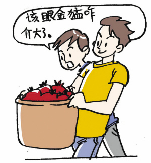 例句:该眼金猛咋介大了。[这些石榴好大啊。]
