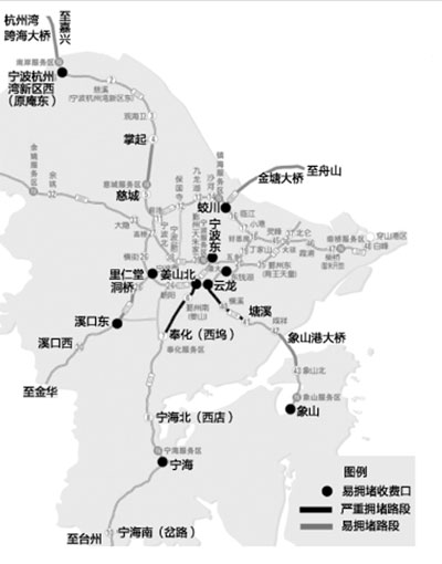 今年中秋小长假为9月15日至17日,放假3天。昨天,市公路管理局发布今年中秋高速公路大流量预警,并对拥堵路段提出绕行提示。记者 范洪 通讯员 褚惠强 根据历年数据预测及综合情况分析,市公路局列出了今年宁波境内高速公路易堵路段。 易拥堵的绕城节点:G1501绕城高速姜山北枢纽互通(绕城高速主线双向至G15甬台温高速宁海、台州方向);G1501绕城高速蛟川枢纽互通(绕城高速主线双向至G9211舟山跨海大桥舟山方向);G1501绕城高速云龙枢纽互通(绕城高速主线双向至S19象山港大桥及接线象山方向);G1501绕城高速里仁堂枢纽互通(绕城高速主线双向至G1512甬金高速宁波段金华方向)。 易拥堵的桥面:G15杭州湾跨海大桥、S19象山港大桥、G9211舟山跨海大桥。 易拥堵的隧道:G1512甬金高速宁波段(溪口西至嵊州段及洞桥至溪口东段)隧道路段、G15甬台温高速(姜山北至奉化段及宁海北至宁海南段)、S19甬台温复线高速(云龙至塘溪隧道路段)、G15杭州湾大桥南接线高速(慈城至掌起隧道路段)及庵东出口(杭州湾新区方特东方神画游乐场)。 易拥堵的收费站:由于中秋高速不免费,因此在一些收费出口将会出现长时间排队等候现象。这些收费出口包括:杭州湾跨海大桥南接线庵东收费站、宁波东收费站、宁海收费站、象山收费站等。 ■绕行方案 一、G15沈海高速(甬台温宁波段)姜山北枢纽至奉化段受堵绕行方案 宁波东至宁海方向:①选择在G1501绕城高速姜山北枢纽互通位置提前右转驶入绕城高速59K到朝阳出口下高速→宁波机场高架南线→三高连接线奉化方向→大成路→奉化上高速;②在G15姜山下高速后选择宁西线→奉钱线→奉化上高速或选择宁姜公路→莫方线→三高连接线奉化方向→大成路→奉化上高速。 上海、杭州、北仑、舟山方向来车至宁海、台州方向:在G1501绕城高速朝阳出口下高速走三高连接线往奉化方向→大成路→奉化上高速。 宁海至宁波东方向:在奉化下高速→奉钱线→宁西线→姜山上高速。 宁海至杭州、上海北仑方向:奉化下高速→大成路→三高连接线→朝阳上高速。 二、S19甬台温高速复线(象山港大桥)受堵绕行方案 象山至宁波方向:①走S311象西线往宁海方向→G15甬台温高速宁海进口上高速往宁波;②在象山境内走S215盛宁线往宁波方向,再通过横山码头与西泽码头的轮渡实现绕行。 宁波至象山方向:①咸祥下高速→沿海中线往奉化方向→S214往宁海方向→宁海北上G15高速→宁海下高速→S311象西线往象山方向。②咸祥下高速→沿海中线→S215盛宁线→横山码头→象山轮渡→象山。 三、沈海高速(杭州湾跨海大桥)受堵绕行方案 上海至宁波方向:走杭州湾环线北线到海宁枢纽→嘉绍大桥→G92杭甬高速往宁波方向。 宁波至上海方向:提前在宁波绕城高桥枢纽转G92杭甬高速→嘉绍大桥→经杭州湾环线北线到海盐枢纽(若嘉绍大桥封道→杭甬高速杭州方向→沪杭高速上海方向…… 慈溪至上海方向:走中横线或G329国道(慈溪城区道路车辆相对拥堵,货车禁行)往余姚方向在上虞或牟山上G92杭甬高速→嘉绍大桥→经杭州湾环线北线到海盐枢纽。