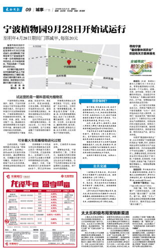 备受市民关注的宁波植物园将于9月28日起至明年4月28日开园试运行。这也意味着,宁波将结束15个副省级城市中唯一没有植物园的城市的历史。在今年国庆期间,市民也将多一个休闲游乐的好去处。 对于票价问题,在昨天召开的新闻通气会上,宁波植物园也给出了最新方案:试运行期间票价减半。也就是说,原来每张40元的票价只要20元就可以了。 记 者 林 伟 通讯员 张 寒 试运营的是一期科普观光植物区 宁波植物园以搜集、保护、保存、开发利用浙东地区乃至华东地区植物资源为重点,同时适当引种国内外优良园林植物物种,开展植物博览展示、科普教育和科学研究,集科研、科普、游览、休闲功能于一体,建成既有优美的园林景观又有丰富的科学内涵、兼有城市公园功能的综合性植物园。 宁波植物园位于镇海新城:东至东外环,南至北外环,西至329国道,北至永茂路。项目规划总用地面积322公顷,规划分为科普观光植物区、体育休闲植物区和花卉园艺植物区三大片区。 这次开园试运营的是一期科普观光植物区,共120公顷,大小相当于雅戈尔动物园,这个区域也是整个宁波植物园的精华所在。 科普观光植物区以四季交替及“旧记忆,新创意”为设计理念,分别打造“春赏蔷薇夏品莲,秋看金桂冬探梅”的春、夏、秋、冬四季植物景观体验区,包含了木兰春色园、樱花海棠园、兰园、月季园、百合园、水生湿生植区、槭树秋香园、桂花园、梅园、松柏园、植物进化之路、东方本草园、古沉木园等17个植物专类园。 可坐着火车观看植物进化过程 记者注意到,宁波植物园最大的亮点是“植物进化之路”。这条路以一段约650米长的废弃老铁轨为依托,通过景观的处理,完美融合花境与花径的概念,向游客们展示了植物个体生长的自然美,更展现出植物自然组合的群体美。 而承载着不少市民成长印记的老铁轨也在这里以别具一格的新方式展示了它的价值。在这段老铁轨上,还将通行小火车,让市民可以坐着火车观看和科普植物进化的过程。 据统计,目前,宁波植物园共引进植物原种630余个、园艺品种2000余种,已栽植乔木25000余株。 需要指出的是,宁波植物园的二期、三期项目,也就是花卉园艺植物区和体育休闲植物区拟通过社会化运作来建设。位于花卉园艺植物区的宁波盆景园已启动建设,将于2018年底前建成。 票价如何? 除了景观,市民最为关心的,还是宁波植物园的门票定价。昨天,园方确认门票价格为40元/人次,但在试运营期间执行半价,也就是20元/人次。通过宁波植物园官方微信平台购买门票的话,可以享受票价8折优惠,即16元/人次。 此外,儿童、老年人、现役军人、残疾人等特定人群的门票优惠和减免政策按照浙价服【2009】254号文件规定执行。 宁波市民还可办理宁波植物园市民体验卡,每张50元(含工本费10元/张),在开园试运行期间可使用,但闭园及举办特定活动期间不予使用。 镇海区的居民还可以办理宁波植物园镇海惠民卡,10元/张,有效期为1年,到期缴纳工本费续卡后可继续使用。但这个卡仅限非节假日(双休)使用,同样在闭园及举办特定活动期间也不予使用。 这两种卡都实行实名制,仅限本人使用。 公共交通 1.387路公交车起点站、终点站分别为公交骆驼中心站和招宝山站,途径植物园西站(3号门附近); 2.将于9月22日开通的346路公交车,起点站、终点站分别为公交联勤站和半路凉亭(地铁2号线),途经植物园西站(3号门附近); 3.将于9月22日开通的37路公交车,起点站、终点站分别为公交骆驼中心和公交会展路站,途经植物园西站(3号门附近); 4.将于9月29日优化调整379、399路公交车,从植物园西站(3号门附近)始发。