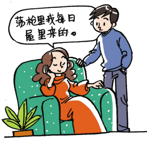 例句:荡枪里我每日屋里来的。[这段时间我每天在家的。]