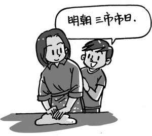 例句:明朝三市市日。[明天是三市集市的日子。]