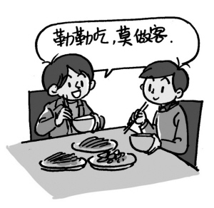 解释:客气,把自己当做客人。