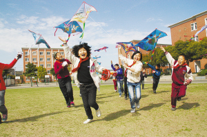 | 在奉化莼湖中心小学独有的“周末嘉年华”活动中孩子们放飞了亲手制作的“海味风筝”。 |