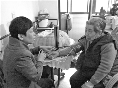 | 志愿者上门为行动不便的老年居民、残疾人群等提供定期的免费血压测量服务。 |