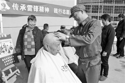昨天,391路公交司机盛爱丰带着同事到江北甬江村为老年人服务。他们身穿绿军装,头戴“雷锋帽”,让老人们眼前一亮,被大家称为“活雷锋”。盛爱丰从2014年接手391路公交线路,成了甬江村500多位老人的老朋友。至今他已为老人免费理发上千人次。
