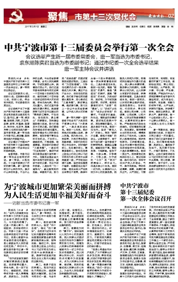 中共宁波市第十三届委员会举行第一次全会