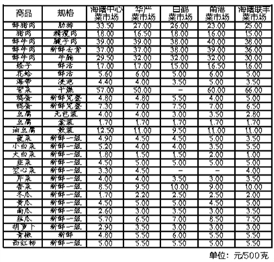 商报讯(记者 孙美星 通讯员 卢健咏)昨天,市价格监测与成本监审局公布了最新一期民生商品价格监测信息。据监测,与上期相比,本期列入民生商品价格信息公布范围的9家超市49种商品价格总水平下跌0.23%,10家农贸市场98种商品价格总水平下跌0.12%。 本期超市商品价格总水平下跌0.23%。在49个监测品种中,价格周环比下跌的有14种、持平的有23种、上涨的有12种。从种类来看,蛋、蔬菜、肉、水果、大米类均价分别下跌3.79%、2.00%、1.84%、1.26%、0.33%;牛奶、鱼、方便面、食用油类价格分别上涨2.59%、2.47%、1.28%、0.07%。 本期菜市场商品价格总水平下跌0.12%。在98种监测品种中,价格周环比下跌的有36种、持平的有41种、上涨的有21种。从种类来看,蛋、蔬菜、肉、食用油类均价分别下跌0.72%、0.26%、0.11%、0.02%;调味品、水产品类均价分别上涨0.12%、0.03%。