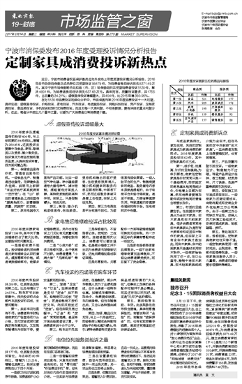 近日,宁波市消费者权益保护委员会对外发布上年度受理投诉情况分析报告,2016年全市各级消保委及成员单位共受理投诉98479件,为消费者挽回经济损失8371.49万元。其中宁波市消保委秘书处和县(市、区)消保委组织共受理消费者投诉5130件,解决4801件,为消费者挽回经济损失637.68万元。具体而言,质量投诉最多,共1755件,占总量的34.21%;虚假宣传投诉增幅最大,共404件,比2015年增380.95%。 在对5130件消费投诉的细化分析中,市消保委列举2016年度消费投诉十一大问题,具体包括:虚假宣传投诉、价格投诉、家电投诉、汽车投诉、电信服务投诉、网购纠纷投诉、房产投诉、定制家具投诉、食品类投诉、手机投诉和预付式消费投诉。而且对每一大类问题,不但有数据,更有详细的重点问题分析,在此,笔者从中挖出几个重中之重,以期为广大消费者日常消费提个醒。 A.虚假宣传投诉增幅最大 2016年度涉及虚假宣传的投诉404件,与上年同期的84件相比,增幅为380.95%。这类投诉主要集中在食品、家电、服装类以及美容、婚介服务类,投诉焦点为商品性能和服务品质。从具体投诉来看,四方面问题凸现: 第一,保健食品宣传疗效,普通食品宣传功效。一些食品生产、销售者违法宣传,在保健食品外包装、说明书上标称“本品对治疗某某疾病有一定疗效”;在“QS”标注的普通食品上违法宣传“提高免疫力、改善睡眠质量、抗疲劳”的功效。 第二,家用电器夸大宣传产品功能。比如一些空气净化器、净水器经营者夸大宣传净气、滤水效能,虚假宣传对某类人群、某种物质能起到某种作用,实际上,只是促销噱头,有名无实。 第三,美容、婚介机构虚假宣传,招徕顾客。美容机构推出的医疗美容、生活美容效果诱人,婚介机构提供的服务内容应顾客所需,中顾客下怀,然而这些服务承诺只是看上去很美,实际上无法兑现。 第四,第三方电商交易平台核查不到位,为虚假宣传提供渠道。一些入驻平台的生产、销售商提供的商品、服务宣传内容本身就是虚假的,由于电商平台未经仔细核查,甚至不核查,为图省事直接引用,导致虚假内容直接传递到网购平台,在电商网页中传播。 B.家电售后维修难投诉占比较高 2016年度共接家电投诉1199件,其中关于售后维修的占了较大比例。主要投诉的问题有五: 一是维修收费不规范。投诉维修者利用消费者对家电维修业认识的盲点,虚报零部件价格,或者谎报维修部件,故意多收维修费用。另外也有投诉上门无论有无质量问题或能否修理,均要收取相关费用。 二是“小病大修”或多次维修问题。由于信息不对称,消费者遭遇“小病大修”“无病乱修”等情况。 三是保修期内,不留维修记录。按规定:三包期内,连续修理两次以上,消费者可以要求退换。但是部分维修工并不主动为消费者书写维修记录,这给后期维权造成取证困难。 四是无零配件。无零配件一方面导致维修超期可换货无法实现,另一方面五年内保障有零配件成一纸空文。 五是家电维修商假冒品牌售后。一些不法家电维修商冒充品牌售后,不但让消费者蒙受损失,而且留下了安全隐患。 C.汽车投诉约四成落在购车环节 2016年度汽车投诉共289件,位居商品类投诉第二位,比去年增长了24.57%。购车环节纠纷较集中,相关投诉约占全部汽车类投诉的四成,主要问题有: 第一,实际车况与宣传不符。消费者购车时轻信商家的广告宣传和口头介绍,支付定金或预付款确定购车意向后,又发现车辆情况与实际不符,要求退款而起纠纷。 第二,混淆“定金”与“订金”。如果消费者是支付“定金”后不购车,经销商可以没收“定金”;若是经销商不按约定交车,则须双倍返还“定金”。但在实际交易过程中,“订金”和“定金”常常被混淆,甚至单方面由经营者说了算,于消费者来说十分不公平。 第三,购车后不兑现承诺。在推销时,部分汽车销售人员为了业绩和提成,会口头承诺一些购车优惠,如赠送车载导航、加油卡、免费提供贴膜、车内装潢等。但当车辆售出后,又会以各种理由减免优惠。 第四,加装、赠品以次充好。与上一个异曲同工,即经销商以赠送各种配饰或给予价格优惠为噱头,吸引、诱导消费者购买更多加装品或者所谓的“大礼包”。但事实上加装的各种配件可能并不是必需品,而且还存在以次充好、甚至是“三无”产品的情况。 第五,捆绑销售车险、车贷。此类现象在我市相当普遍,具体有搭售保险的,有要求购买“全险”的,有缴纳“续保押金”的,也有收取按揭手续费,甚至还有难退回还贷保证金的。 D.电信位列服务类投诉之最 2016年度电信投诉共177件,位居服务类投诉首位,与去年的80件相比,增幅为121.25%,增幅位居第三。投诉主要表现在以下四个方面: 一是签订协议内容和程序不明确,消费者稍不小心就可能掉进收费陷阱,而且往往签订容易退订难。 二是一些套餐和资费项目宣传,只宣传对消费者有利的,如“零月租”“存话费送手机”等,却未对活动内容作全面细致的介绍,一旦实际与消费者的理解有偏差,很容易让消费者感到虚假受骗。 三是在设置最低消费、固话与宽带绑定后,其中一项业务欠费,另一项业务也立即停止服务。 四是免费、优惠项目结束后,套餐进入计费阶段,在这一节点上,运营商向消费者告知并确认不再享有免费与优惠情况下,是否延用套餐进入计费,服务欠规范,告知不明确,导致消费者认为