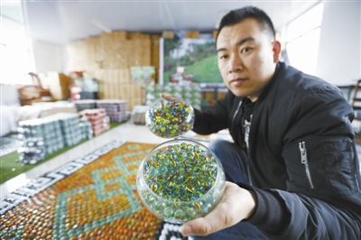 | 用废旧玻璃加工出来的玻璃弹子和仿景观石。 记者 范洪 摄 |