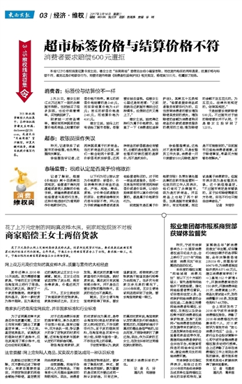 超市标签价格与结算价格不符