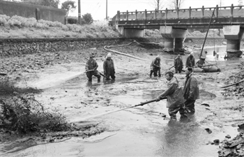 | 昨天,工人们正抓紧时间对位于镇海区骆驼街道的五星河进行河道清淤疏通作业。该河道预计于4月底完成整治工作。记者 徐文杰 通讯员 陆金妹 摄 |