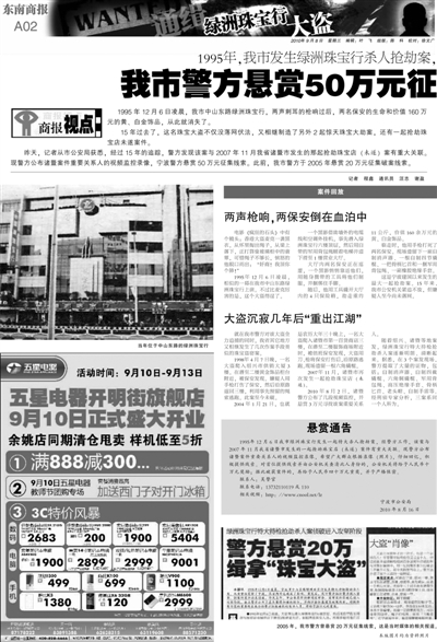 | 2010年,我市警方再次悬赏50万元征集线索。这是当时本报的相关报道。 |