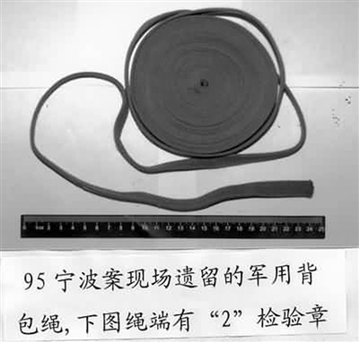 | 1995年宁波案现场遗留的军用背包绳。 |