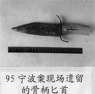 | 1995年宁波案现场遗留的骨柄匕首。 |
