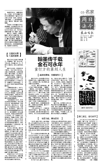 世路知交薄 门庭畏客频 童衍方的父亲是宁海前童人。前童镇以“童”姓为大姓,子孙兴旺。传至童父这一代,不囿于小镇生活,前往上海寻找机会。 童衍方出生时,家里条件并不算好。1962年他中学毕业,正值三年困难时期,为减轻家庭负担,童衍方辍学,在上海虹口区副食品公司做了一名营业员。 虽然生活艰难,但童衍方从小表现出很高的艺术天分,几乎是无师自通地爱上了书画印艺术。他喜欢出入各种书画店,不久,结识了游走于僧俗两界的若瓢和尚。 “若瓢是我的恩人,和沪上文艺界人士多有交往,以画驰名于艺林。”在若瓢的引荐下,童衍方认识了影响他一生的两位恩师来楚生和唐云,他伸出两只手比划,“来先生教我书画篆刻,唐先生教我收藏鉴赏。” “在吴昌硕的门生中,来先生无疑是出类拔萃的,他以古玺汉印为本,辅以晚清流派,布局参差有致,能在吴让之、吴昌硕、齐白石诸家林立之际,另辟蹊径,自成面目。”童衍方回忆,那时他每星期都要去来先生家一次,每次都要带一份作业请先生批改。来楚生在特殊时期与人少有来往,有一次难得与几位朋友聚会,带童衍方同往。席间朋友问来先生:你的几个学生中,谁的印风与你最神似?来先生不假思索地指向童衍方。那位朋友顺势摸出一方青田石说:那就请小童小试牛刀? 来先生二话没说,接过印石,提笔在上面起了稿子“门庭畏客频”,交与童衍方奏刀。童衍方知道印文出自杜甫《从驿次草堂复至东屯茅屋二首》中的“世路知交薄,门庭畏客频”。这真实地反映了来先生“文革”后期的处境,也是他遗世独立精神的写照。等到前辈酒过三巡,童衍方搁下刻刀,吹去石屑,打出印蜕,呈于老师面前。来先生接过一看,欣然微笑,拿过刻刀补上边款,请朋友传阅,前辈们异口同声给予褒扬。来先生当场表示要收藏这方“急就章”,更让童衍方感动。 来楚生先生于1975年告别人世。来先生作古后,其妻在整理他的遗物时发现了这方印章,将它送还给童衍方留作纪念。 盛游托春禊,饮觞期风兰 童衍方对另一位老师唐云先生也是感激不尽的。他喜好收藏古代名家书法、古砖砚的习惯,很大程度上是受唐云先生的影响。 1975年,童衍方新婚在即。唐云先画了两幅大画相赠,一幅梅花、一幅松树。之后又邀他共赏一副吴昌硕的石鼓文对联,落款为“安吉吴昌硕年八十又一”。童衍方知道,吴昌硕去世时八十四岁,八十一岁正是其书法的高峰期,此对联当属他的晚年精品,不禁连声说好。唐云见状,笑说要送给童衍方做贺礼。这叫他如何消受?只好说“对联在我新房挂一个月,算是度个蜜月,也感谢唐老的美意”。但唐先生坚持相赠,童衍方只好感激地收下这份厚礼。 一晃十余年过去了,一次唐云设宴招待外国友人,童衍方作陪。席间论及吴昌硕,唐云顺口提及童衍方也有研究,自己还送过吴昌硕对联给他。于是有人接口问童衍方:“此联还在你手里吗?”唐云马上说:“东西送人了,或易物,或转送,都随受者便,不必多问了。”童衍方当即应道:“唐老厚礼,我一直珍藏且已经有了‘孩子’。”原来在唐云送他那副对联之后的十数年间,童衍方又陆陆续续收得吴昌硕作品九件,所以他笑称那件作品有孩子了。唐云听后非常高兴,说:“饭后我要午睡,四点钟,你把收藏的吴昌硕作品拿来给我看看。”童衍方准时将大小十件作品送到唐云跟前,唐云一一点评讲解,十分欣慰。 童衍方说,在拜唐云为师之后,得以饱览先生所藏的董其昌、八大、石涛、扬州八怪等书画精品以及有金石家铭记的汉砖瓦砚。唐云赠予童衍方的吴昌硕对联客观上说也是童本人的第一件藏品,“严格意义上讲,是唐云先生将我引上收藏道路。” 与古为徒,意与古会 1980年,童衍方调入上海中国画院,为书法篆刻专业创作人员。1983年,被吸收为西泠印社社员,未及不惑之年,便驰誉国内书画界。此后他不断深耕,篆刻技艺和收藏研究成就极高,成为当代最有代表性的篆刻家之一。 在个人成就达到顶峰的同时,童衍方也不忘家乡。2014年5月,童衍方艺术馆在前童镇一幢名叫“群峰簪笏”的江南风格四合院式民宅内开馆。他为家乡倾情捐出100多件自己创作的书、画、印作品及自己编著、收藏的史料和书籍若干册,还捐赠了精心收藏的紫砂壶、扇面等珍品。他的弟子们也捐出各类书画作品近30幅,一下子丰富了艺术馆的展品。 2017年2月17日,宁波市繁荣发展社会主义文艺工作会议上,童衍方等12人受聘为首批“宁波市文艺大师”。“第一次挂上大师的名号,挺开心的,但我也怕人家叫我大师。” 有了这个名头,童衍方在百忙之中积极为家乡策划起活动来。他选中了清中期西泠八家之一的陈鸿寿(号曼生)作为他第一次分享的主人公。“选择陈鸿寿有两个原因,一来他是西泠篆刻史上的重要人物,二来他设计并铭刻的‘曼生壶’在紫砂界非常有名,正好跟茶博院的主题契合。” 雅集由童衍方亲自主持,群贤毕至。他特地从上海带来陈鸿寿真迹近20件,其中包括陈氏篆刻的八方原印,都是压箱底的宝贝。陈鸿寿所作的曼生壶真品存世极少,其中以杭州唐云纪念馆收藏的八把曼生壶最为著名。“前阵子我叮嘱玉成窑非遗传承人张生,让玉成窑仿制了八把与‘八壶精舍’同款的曼生壶。壶上的句子是陈曼生原来的题铭,用我的书体写,由我的学生唐存才刻好,今天这八壶在宁波茶文化博物院集中展示。”童衍方结合P