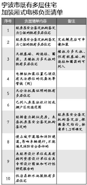 老小区没有电梯,上下楼困难愁坏了不少老年人。随着宁波市人口老龄化趋势加重,为老楼加装电梯的呼声也越来越高。“我们小区要是能像高层住宅一样,有一部电梯该多好!”老小区居民,尤其是五、六楼的老年居民都有这样的期盼。 昨天,记者从宁波市住建委得到的好消息是,老小区居民们的这个心愿即将实现了。由市住建委牵头起草的《关于推进既有多层住宅加装电梯的实施意见(试行)》(征求意见稿)(以下“简称《意见》(征求意见稿)”),自即日起向全社会公开征求意见。今后,宁波多层住宅将全面铺开加装电梯,财政将给予一定的补贴。老旧住宅小区将加装的电梯以厢式电梯为主,并发展座椅式、站立式楼道电梯或爬楼机。 今日起,市民可直接将修改意见发送至邮箱:2083616082@qq.com,也可以传真至89180698,截止时间为2017年7月14日。 1.加装电梯如何申请? 根据《意见》(征求意见稿),既有多层住宅加装电梯以单元为单位提出申请,并经该单元全体业主同意并签署“加装电梯协议书”。申请人可以推荐业主代表或委托业主委员会、电梯安装企业等其他单位作为代理人组织实施。 《意见》(征求意见稿)还指出,申请人或代理人(以下简称“申请人”)享有向区县(市)住房城乡建设行政主管部门(以下简称“属地住建部门”)依法提出申请;征求业主意见,签署电梯委托加装合同及第三方监理合同;以及向特种设备安全监督管理部门提出电梯安装监督检验等权利。 2.加装电梯需要具备哪些条件? “我居住的老小区能加装电梯吗?”对于翘首盼望加装电梯的居民来说,这个问题都十分关心。除了要单元全体业主同意外,《意见》(征求意见稿)明确了既有住宅加装电梯应当同时满足以下条件: (一)既有住宅加装电梯实行负面清单管理制度。列入负面清单管理的既有住宅不纳入或有条件纳入。什么是负面清单?从《意见》(征求意见稿)中所列出的表格中可以看出“经房屋安全鉴定机构鉴定为D级的既有多层住宅”“经房屋安全鉴定机构鉴定为C级的既有多层住宅(完成解危后可申请加装)”“无合法权属证明的既有多层住宅”“已列入房屋征收计划或棚户区改造范围”等10种情况不符合加装电梯的条件。(具体负面清单,可详见文后表格)。 (二)经本单元全体业主同意,签订“加装电梯协议书”,加装电梯方案经公示且无异议; “加装电梯协议书”应当根据楼层受益等因素协商确定工程建设、设备购置安装费用、维护保养、维修更新、能耗等费用分摊方案,落实电梯加装完成后的使用管理单位。 (三)已委托原设计单位或具有相同资质的设计单位出具设计图纸和可行性研究报告。 3.加装电梯的申请程序是什么样的? 根据《意见》(征求意见稿),申请可分成四步。 第一步,提出申请。申请人向属地住建部门提出申请,提交:1、签署的“加装电梯协议书”和全体业主房屋产权证、身份证明;2、经公示且无异议的加装电梯方案和可行性研究报告及委托第三方监理合同。加装电梯方案和可行性研究报告应当在本住宅小区、本单元等显著位置进行公示,公示时间应不少于10个工作日。申请人公示时应当同时公开异议受理电话。公示有异议的,应当注明异议协商处理情况和结果。 第二步,联合审查。属地住建部门受到申请人申请,审查已经公示且无异议的,应当在5个工作日内向规划、特种设备安全监督管理、消防、综合执法等部门发出联合审查意见书。相关部门应当在收到联合审查意见书后5个工作日签署意见,并反馈属地住建部门。相关部门审查意见应当注明“同意”或“不同意”。规划、特种设备安全监督管理、消防、综合执法部门同时作出“同意”审查意见后,属地住建部门应当批准加装申请。 第三步,实施加装。申请人申请加装成功后,可以实行电梯采购,委托开展设计、施工,与相关单位签订《加装电梯施工承包合同》,明确合同各方权利、责任、义务,进行加装施工;特种设备安全监督管理部门按照特种设备安全技术规范要求,开展加装电梯安全监督检验。 第四步,使用登记。申请人或者受委托电梯使用管理单位与具有相应资质的电梯维护保养单位签订维护保养合同,并依法向特种设备安全监督管理部门办理使用登记,取得使用登记证。 4.如何补助?哪些情况不享受补助? 《意见》(征求意见稿)明确,既有多层住宅加装电梯,将遵循“试点带动、示范推动”原则,实行财政资金竞争性补助。各区县(市)按每部加装电梯的申请人予以15万元补助,专项用于补贴加装电梯建设安装成本;其中:各区县(市)前10部加装电梯且已通过特种设备安全监督管理部门使用登记的,按每部20万元标准予以激励补助,海曙区、鄞州区、江北区加装电梯补助部分市本级承担50%。 出资加装电梯的业主或其配偶可按规定提取住房公积金、物业专项维修资金。提取住房公积金,提取总额不得超过个人出资部分;提取物业专项维修资金的,不得超过个人账户余额的70%;同时提取住房公积金和物业专项维修资金的,合计不得超过个人出资部分。在原有小区用地范围内加装电梯的,一次性缴纳或建成后按年或次缴纳的行政事业性收费不再收取;应当缴纳政府性基金的、由区县(市)财政代缴后不再补缴。 不过,《意见》(征求意见稿)也明确指出,单一业主多层住宅和四层以上(含四层)联排叠加别墅申请加装电梯不享受财政补