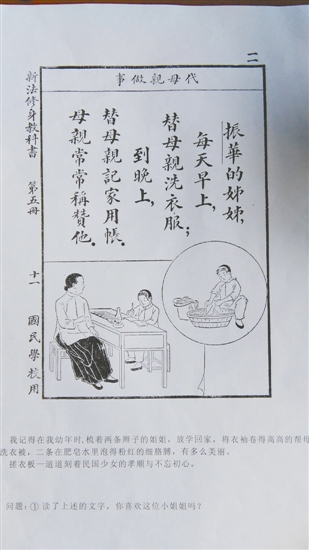 民国教材特别是语文读物受到人们追捧已有好几年了,出版界也纷纷重印当年的教科书,推出了“国语教科书”“国语课本”“国语读本”等。记者近日在采访中发现,我市一位藏友收藏了100多本民国老教材,他就是退休教师竺惠明。竺惠明有30多年的收藏经历,其藏品主要是古灯和民国教科书。100多盏古灯他已无偿捐献给了曾经任教的学校,而对于这100多本民国教科书,他一直在细细地阅读、整理,他将以此为基础,重编一套课外读物送给今天的孩子。他说,好书如明灯,能照亮人生,他愿做一根火柴,点亮民国教科书这盏古灯,让它的光芒润泽孩子们的童年。 钟情老教材源于想念父亲 上个世纪40年代,竺惠明出生于宁波,父亲是小学校长兼任督学。竺惠明说,在童年的记忆中,印象最深的就是父亲伏案备课的情景,每天晚上,父亲在灯下备课、批改作业,他就在一旁看连环画、写字……父亲有保留教科书的习惯,他保留下来的教科书中就有早年使用过的民国教科书,书中常有各种红笔做的标记。 “文革”期间,父亲的教科书大多被焚烧了。父亲去世后,竺惠明在家中的土灶灶壁缝里发现了两本民国教科书,估计是父亲藏于其间的。睹物思人,每次看到这两本教科书,竺惠明就会想起父亲。 上个世纪80年代,竺惠明也成为了一名语文老师,每天备课、改作业,教科书常伴左右。业余时间,竺惠明喜欢淘古,逛古玩市场的淘宝目标就是古灯和民国教科书。 除了逛古玩市场,竺惠明还喜欢走村串户。每逢假期,他就骑着一辆自行车,去镇海、慈溪、余姚等地问人家:“你们家有旧书吗?”竺惠明的大部分民国老课本,就是从乡间收购来的。他还发现,早年慈溪一带民国教科书比较多,和那里的人重视教育很有关系。 对于收购来的老课本,竺惠明会仔细地整理、修补,并一一登记在收藏书目中。 民国课本中有宁波人叶澄衷 竺惠明很喜爱民国教科书,常常翻阅。他觉得那些课文读来很亲切。 如《新法修身教科书》(第五册)中的一篇课文《代母亲做事》,全文寥寥数字:“振华的姊姊,每天早上,替母亲洗衣服;到晚上,替母亲记家用帐(现为账),母亲常常称赞他(现为她)。”竺惠明说,每次读到这篇课文,眼前就会浮现出童年时梳着两条麻花辫的姐姐,放学回家后,她将衣袖卷得高高地帮母亲洗衣服,两条细胳膊在肥皂水里泡得红红的,搓衣板上有姐姐的孝顺。 有的课文用简洁朴实的文字讲一个小故事。课文《谢人扶助》,全文是:“振华和同学跳绳,跌了一跤;大家急忙搀他起来,振华对着同学,再三道谢。”竺惠明介绍说,民国时期,白话文刚刚在全社会普及,小学教科书内容浅显易懂,向善向上,都是通过具体的事情来表达情感或阐述道理。情感是真实的,道理也是人们真心赞同的道理。 民国教材《公民课本》(初级第七册)中一篇《不贪别人钱财》还和宁波人有关呢。课文讲述了宁波帮人士叶澄衷青年时撑船为业,把一个外国人遗失在船上的皮包还给失主的故事。竺惠明说,这个故事很多宁波人都听说过,但不能确定这个诚信的人是谁,这篇课文明确告诉大家,这个人就是叶澄衷。叶澄衷后来成了一名成功的商人,在家乡庄市创办了学堂,包玉刚、邵逸夫等人都曾在他创办的学堂里接受启蒙教育。去年秋天,竺惠明曾应邀在这个已经成为文保单位的“江南第一学堂”里做了关于民国教科书的讲座。 竺惠明认为,民国虽是一个动荡的年代,但也是摒弃了乡试八股后清气升腾的年代,为了给孩子们一个自然生长的童年,那时的一些著名知识分子和社会精英参与到了教科书的编写之中,像蔡元培、张元济、王云五、顾颉刚、叶圣陶、丰子恺、朱自清、夏丏尊等人,他们将德育放在首位,却不过多说教,而以儿童的视角,让孩子们在日常点滴中明白责任和担当。他们的文字往往寥寥数笔尽显中文魅力,处处透着自然和纯净,这也是民国教材的可贵之处。 《对话·民国课本》正在潜心编写中 除了国文以外,民国教科书中还有地理、历史、常识、卫生、算术、手工和社会等科目。随着藏品的增多,竺惠明开始将这些教科书分门别类地进行整理,编写了目录。 竺惠明的民国教科书先后在三个博物馆展出过。去年他在江南第一学堂讲了自己的读后感《一本天然——民国国民学校课本之人文情怀》,讲座结束后,一位归国老华侨走上讲台,捧着竺惠明带去的教科书深深地鞠了三个躬,他说小时候读书是从“天地日月”这一课开始的,看到这些教科书,浓浓的乡愁就从心里涌起。 今年春节的时候,竺惠明遇到了两位喜欢传统文化的朋友,建议他独乐乐不如众乐乐,写本书分享一下民国教科书吧。于是,竺惠明就有了《对话·民国课本》的写作计划。该书分为早课、午课和晚课三本,目前早课已经定稿,午课和晚课的初稿也基本完成,预计全套书将于2018年元旦出版。竺惠明说,虽然之前也出过4本书,但是这套书他写得最用心,是倾注了他毕生心血的一套书。 记者 陈爱红 文/摄 ■ 藏品共赏