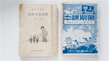 《小学暑期课本》(1948年出版) 由大东书局印刷发行的这一暑期课本,既是孩子们的暑假作业,也是补充教材。其中有课外阅读的文章如《北美独立的序幕战》,也有总复习中的算术题目,但即便是算术题,说的也是生活中的事,如妈妈的衣服要几尺布,爸爸的衣服要几尺布,爸爸妈妈的衣服一共需要多少尺布等。 在竺惠明收藏的民国教科书中,这样的暑期课本仅有两册,较为难得。 |