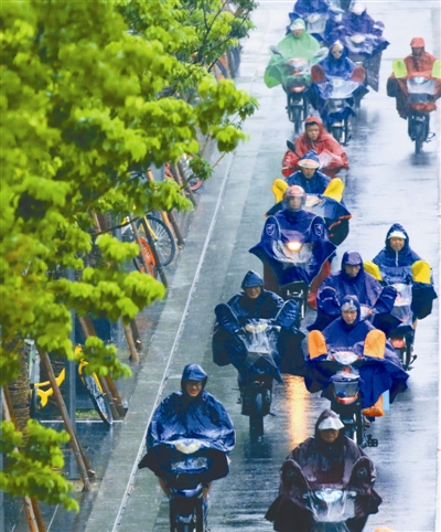 | 昨天,受台风“泰利”影响,甬城遭遇阵雨,局部大雨。记者 周建平摄 |