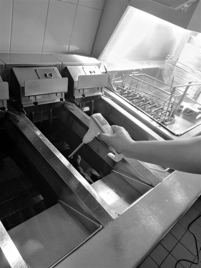 肯德基门店经理用仪器测试油品质量。 记者 毛雷君 摄 |