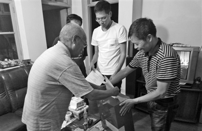 | 宁海县房屋征收办工作人员晚上上门服务,让征迁户投下自己的拆迁意愿征询报名表。 |