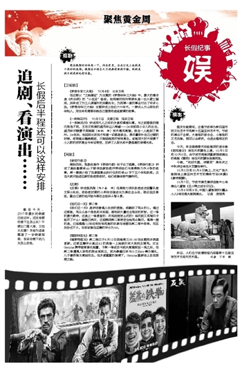 截至今天, 2017年最长的假期已经过半。还没有想好接下去怎么玩?不想出门看人海,又怕太无聊?本报为读者整理了一份假期指南,告诉你剩下的几天怎么安排。 追剧 想在假期好好休息一下,待在家里,坐在沙发上追剧是个很好的选择。假期后半程各大卫视都有新剧开播,网剧美剧日剧英剧也有惊喜。 【卫视剧】 《梦想年华三大线》 10月4日 北京卫视 在这部以“三线建设”为主题的《梦想年华三大线》中,最大的看点是《欢乐颂》的“小包总”杨烁。他饰演的张利军原本是一位火箭工程师,后来成了为工人谋福利的后勤处长,为两弹一星的事业付出了许多心血。《梦想年华三大线》主要讲述上世纪六十年代,一群步入大山深处的年轻人,用生命和青春实践自己理想和追逐爱情的故事。 《一树桃花开》 10月5日 天津卫视 深圳卫视 《一树桃花开》讲述两代人之间的矛盾和情感纠葛。与之前塑造的硬汉角色不同,王志文饰演的盛茂林让人唏嘘——24年前因小女儿的出生,盛茂林怀疑妻子郑婉颐(徐帆 饰)有外遇而离婚,独自一人跑到了贵州。24年后,他回到北京后才知道一切都是误会,想尽量弥补自己过错的时候,却被查出罹患癌症,只能选择再次悄悄离去。该剧用大时代背景下小人物的悲欢离合与命运转变,反映了人际关系中最温暖的亲情关系。 【网剧】 《使徒行者2》 阔别四年,现象级剧作《使徒行者》终于出了续集。《使徒行者2》讲述了高级督察卓sir不断寻找新卧底并带领他们与黑帮势力作斗争的故事。第一集就介绍了在泰国曼谷执行任务的卓sir手下五个年轻卧底。正当大家开始适应新的卧底阵容时,他们却集体被气爆炸死。 《反黑》 《反黑》讲述陈凤翔(陈小春 饰)在黑势力团伙卧底成功回警队做文职8年后,因卧底时期的小弟张志强成长为黑社会头目,被召回反黑组,重出江湖的他开始与黑社会组织斗智斗勇。 《我们这一天》第二季 《我们这一天》是讲述普通人生活的美剧,却戳到了观众的心。通过这部剧,观众从各个角色和关系里,感知到大量社会现实的折射。这一季的最大期待,还是上一季遗留的:杰克到底怎么死的?临死前又和瑞贝卡经历了什么?编剧已表示,这些疑团第二季肯定会给观众解开。值得一提的是,已经整整12年没有拍电视剧的史泰龙将要在第二季中客串,而且戏份还不少。目前该剧在豆瓣的评分为9.8。 《福斯特医生》第二季 《福斯特医生》第二季已于9月13日起每周三05:00在优酷同步英国更新。这部豆瓣评分高达9.2的英剧一上线就引来大批网友围观。女主Gemma携带暗黑复仇能量,于第一季成功与前夫离婚扳回一局之后,在第二季遭遇人际危机被全面孤立,前夫暴富归来与小三Kate筹办婚礼,儿子骤然倒戈离她而去。在矛盾重重的剧情下,Gemma重新走上自我救赎之路。 演出 国庆长假期间,正值宁波举办第四届市民文化艺术节和第十五届亚洲艺术节。宁波的演出不会断,大剧场的音乐会、小剧场的文艺戏剧,既可以合家欢,也适合跟朋友约会。 今天,来自香港春天实验剧团的音乐剧《窈窕淑女》将在天然舞台上演。10月5日和10月6日,由宁波市甬剧团重新排练演出的甬剧《雷雨》将在天然舞台连演两场。 今晚,“花好月圆,诗意浓”周年庆之中秋诗会将在水艺舞台举行。 10月5日和10月8日晚上,文化广场大剧院将上演亚洲艺术节的精彩节目《朱鹮》《唐诗逸舞》。 10月7日,宁波市演艺集团话剧中心将演出儿童剧《丑小鸭之成长日记》。 10月8日和9日,中国儿童剧院的《罐头小人》将在逸夫剧院演出。记者 庞锦燕