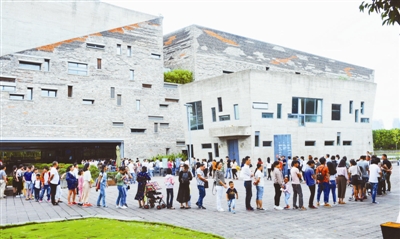 昨天上午,宁波博物馆门口排起了长龙。假日里到博物馆看展览已成为甬城许多市民的选择。记者 丁安 摄